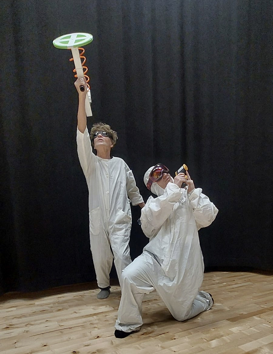 - Hilkka Kekkonen ja Raimo Untola ovat ufotutkijoita Harmaiden alueella ‑näytelmässä.