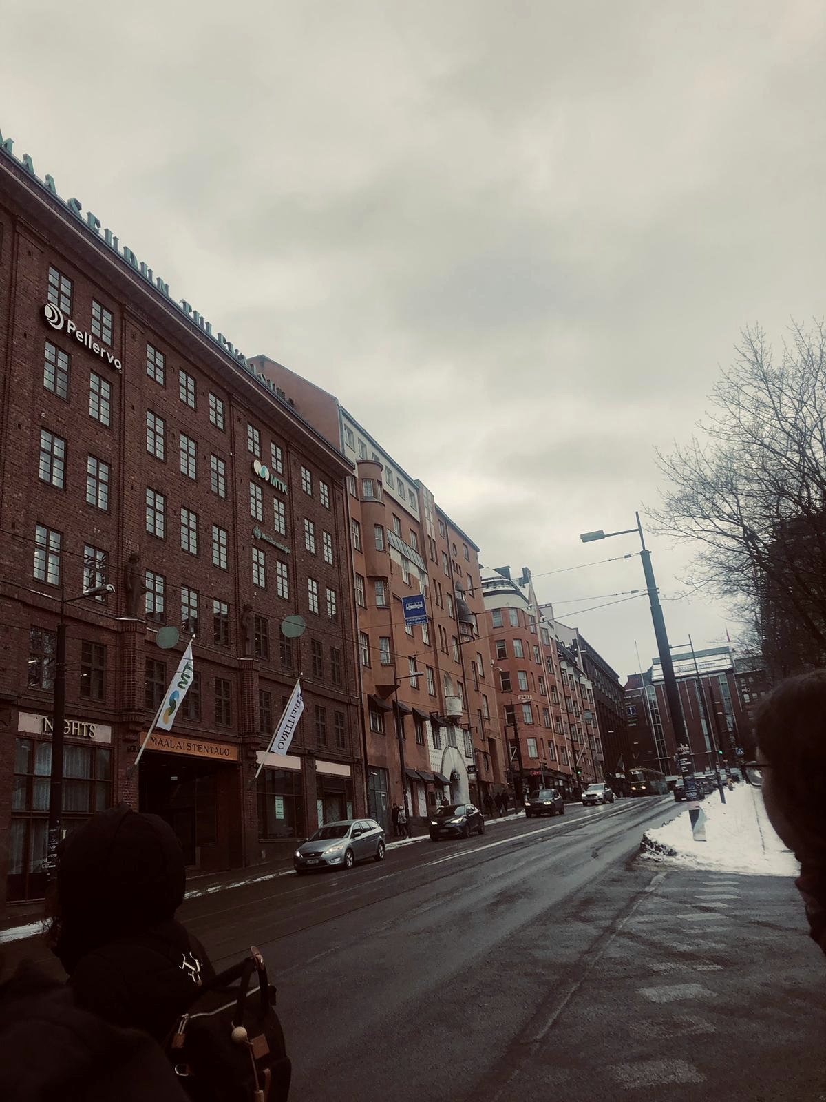 Las­keu­tu­mi­nen oli haus­kaa ja oudon tun­tuis­ta. Hel­sin­gin len­to­kent­tä oli val­ta­van kokoi­nen, täyn­nä kaup­po­ja, ravin­to­loi­ta ja kah­vi­loi­ta. Läh­dim­me junal­la koh­ti Hel­sin­gin kes­kus­taa syö­mään aamu­pa­laa ja odot­te­le­maan esi­tyk­sen alkua Oodiin, hie­noon kirjastoon.