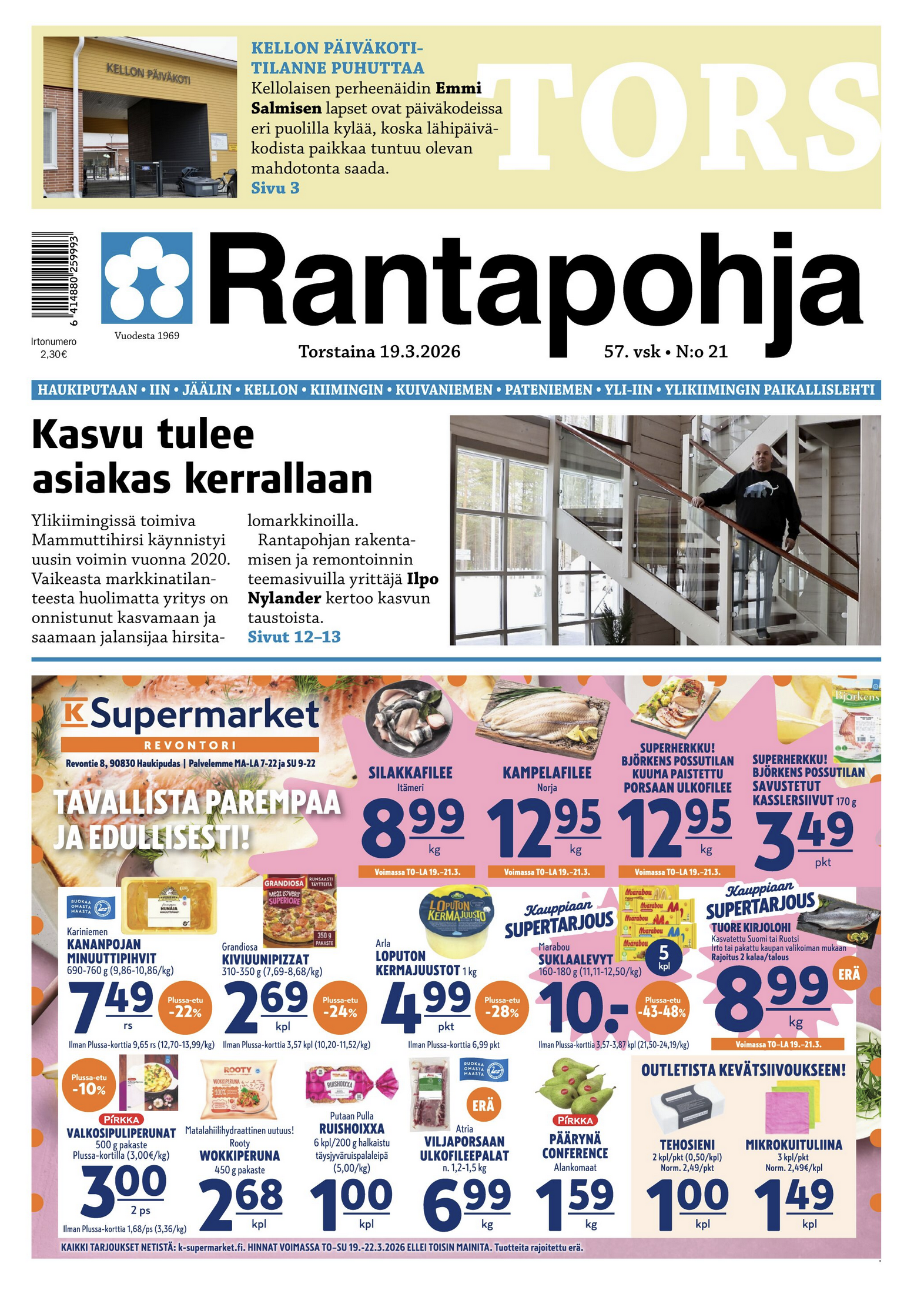 Rantapohjan 19.3.2026 julkaistu näköislehti on tänään kaikkien vapaasti luettavissa. Klikkaa itsesi näköislehteen sivulla oikealla ylhäällä sijaitsevasta kuvalinkistä.