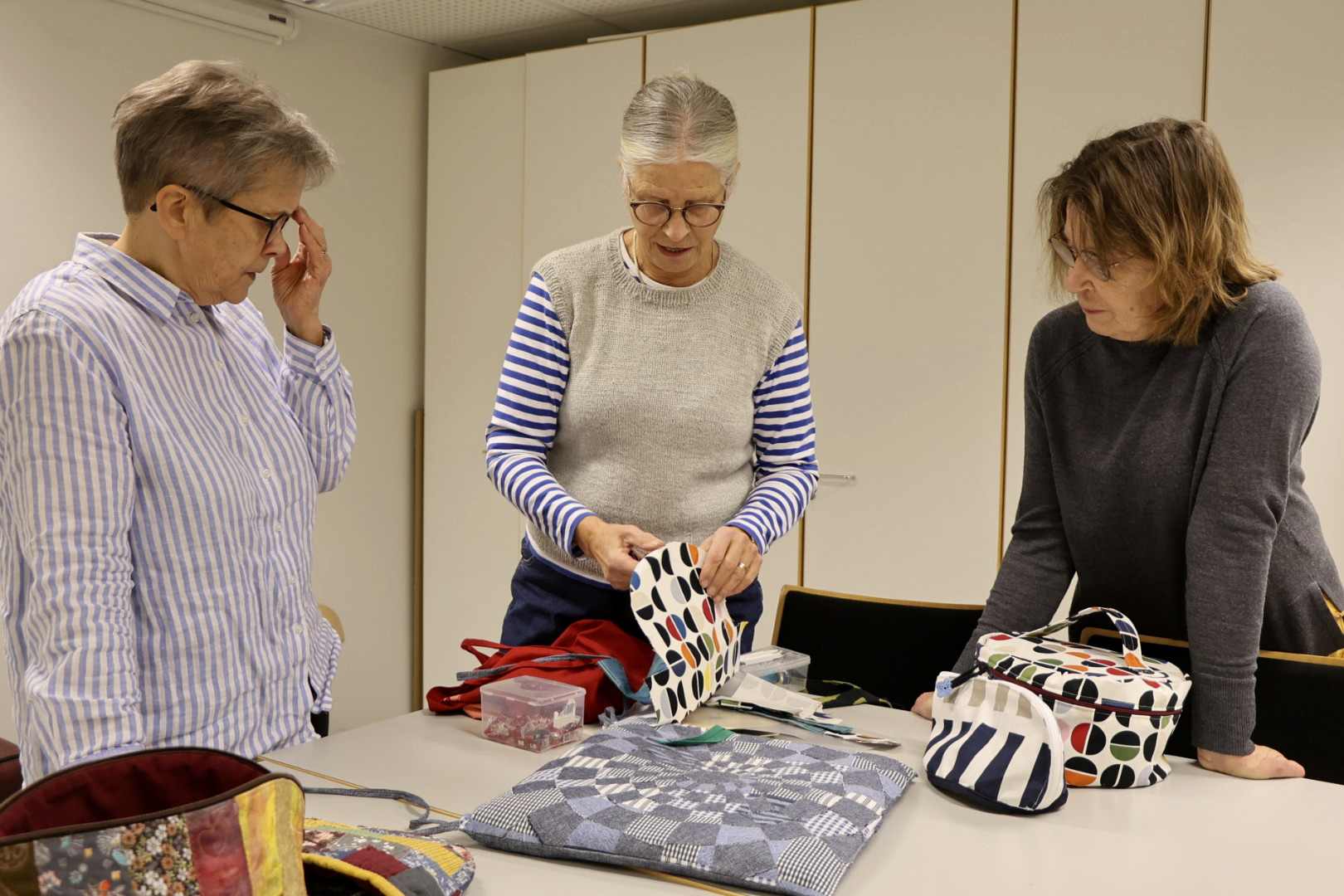Uusia tuulia käsitöihin -ryhmän ohjaaja Sirpa Syri sekä osallistujat Kaarina Kailo ja Helena Mäntylä, kuten muutkin käsityöläiset toivovat, että Kiimingistä löytyy jatkossakin tilat Oulu-opiston käsityöryhmille, kävi vanhalle kunnantalolle ja sen tontille miten tahansa. Kuvat: Teea TunturiUusia tuulia käsitöihin -ryhmän ohjaaja Riitta Syri sekä osallistujat Kaarina Kailo ja Helena Mäntylä, kuten muutkin käsityöläiset toivovat, että Kiimingistä löytyy jatkossakin tilat Oulu-opiston käsityöryhmille, kävi vanhalle kunnantalolle ja sen tontille miten tahansa. Kuvat: Teea Tunturi