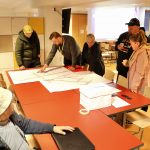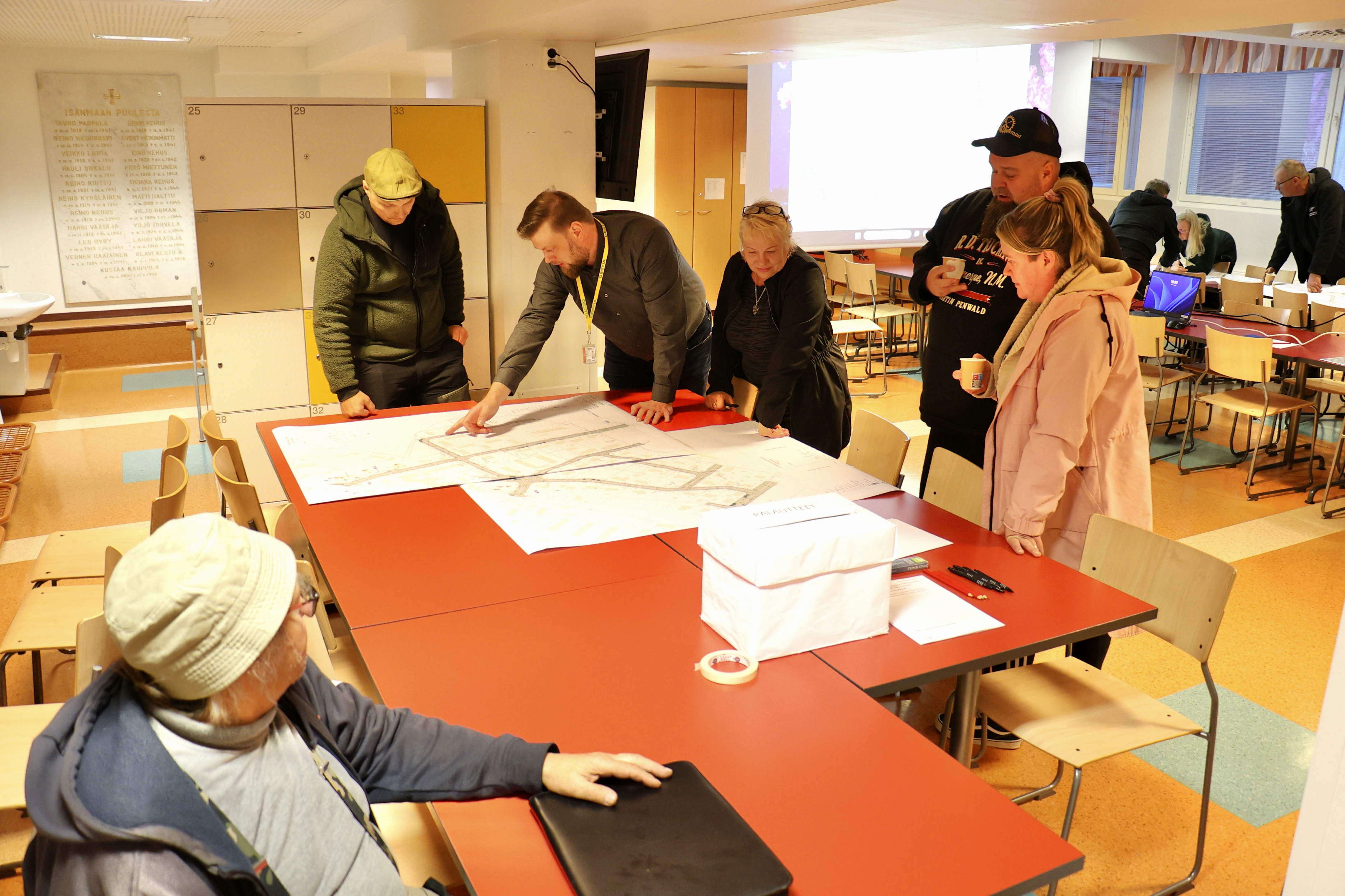 - Esittelytilaisuudessa pöydille oli levitetty isoja karttoja.