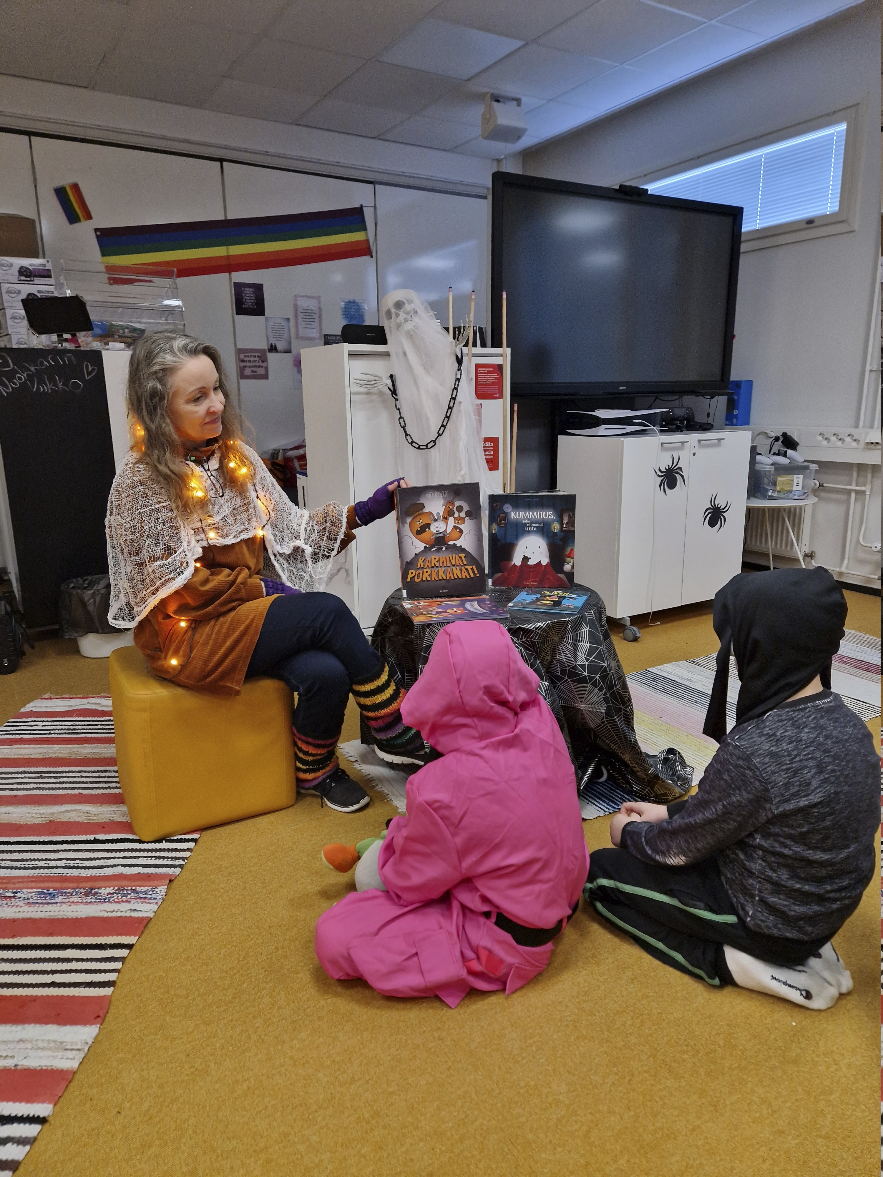 - Kirjastonhoitaja Sirpa luki kivoja ja jännittäviä kirjoja.