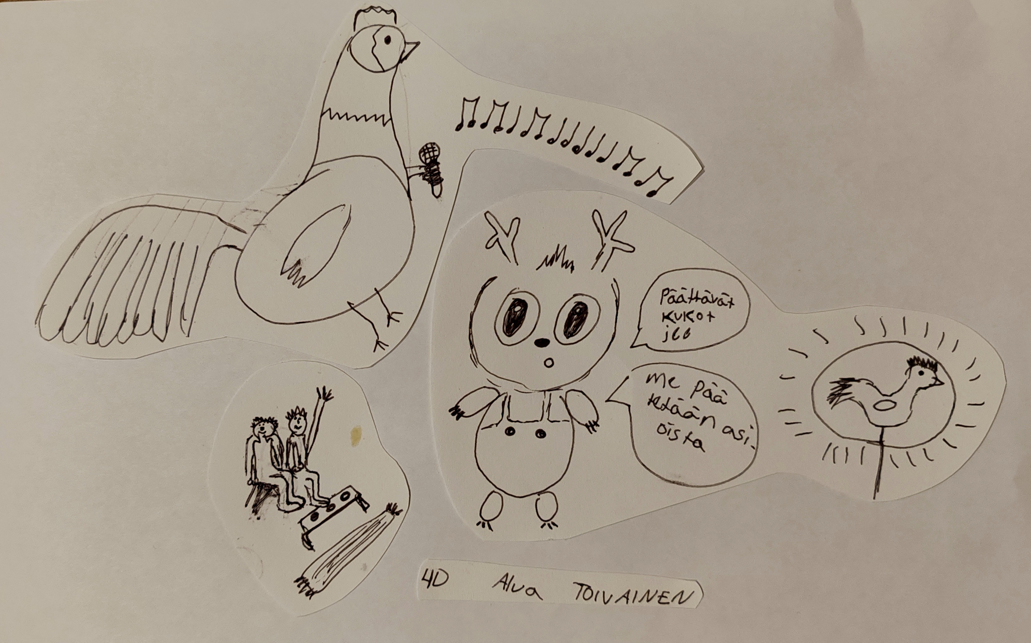 - Päättävä kukko ‑kuvan piiri Emilia Leiviskä.