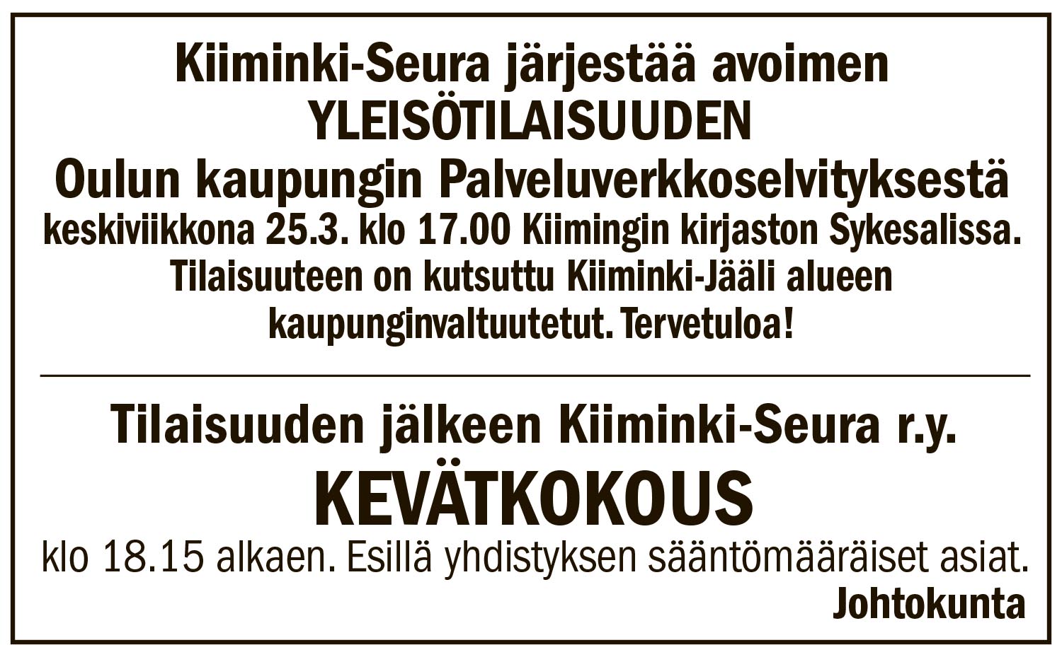 Mistä sinä saat tiedon asuinalueesi tapahtumista ja palveluista? Painetusta sanomalehdestä, kaupungin tai kunnan nettisivuilta, tiedotuslehdestä, sosiaalisesta mediasta vai kertooko kaveri?