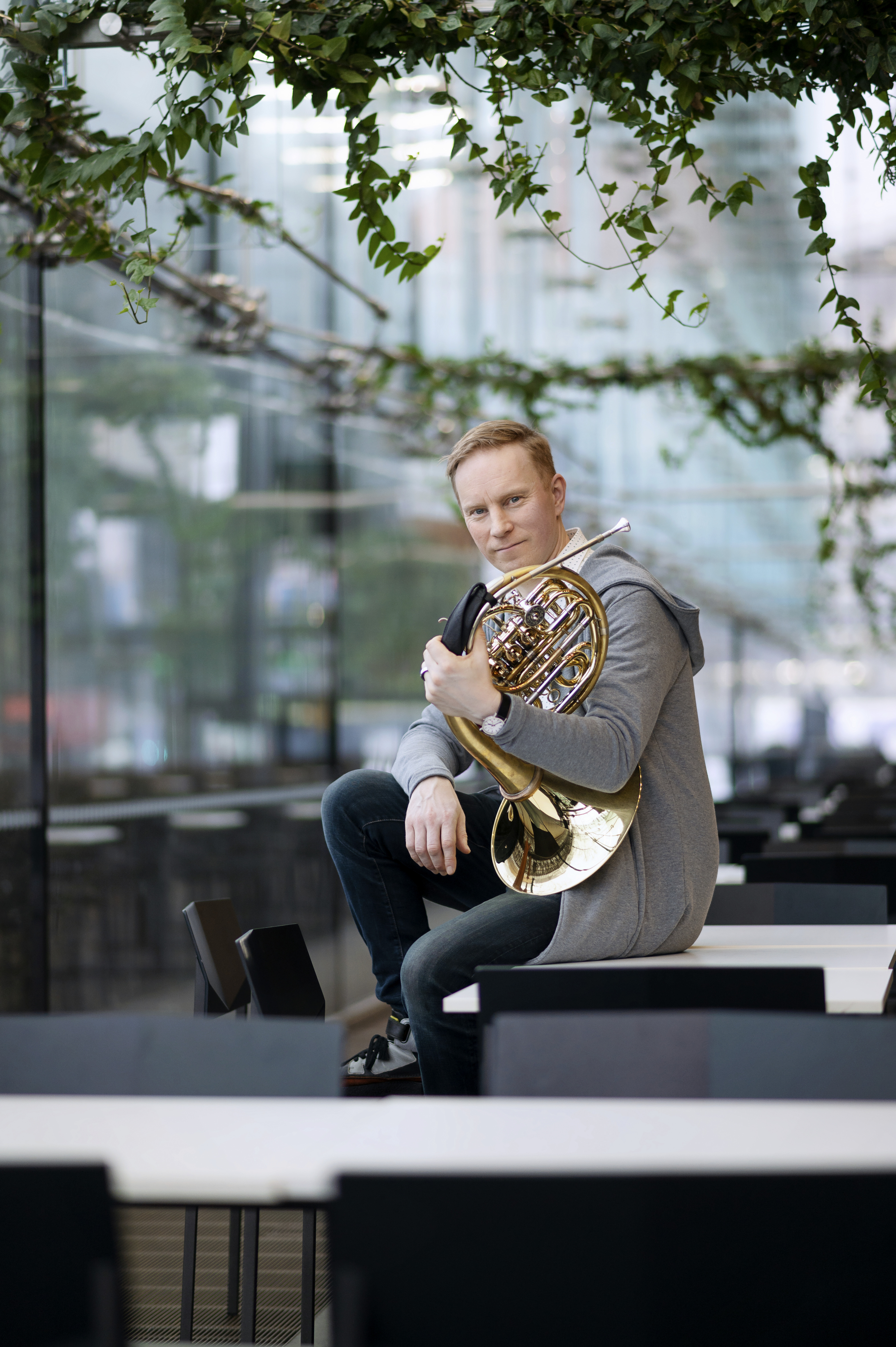 - Ensi kesänä Radion Sinfoniaorkesterin soolokäyrätorvisti Jukka Harjun musiikki soi yli-iiläisessä metsässä. Kuva: Markus Sommers