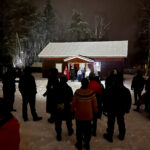 Ylikiimingin kotiseutumuseon pihan jätkänkynttilät loimusivat kutsuvasti sankan lumisateen keskeltä, kun väki kokoontui viettämään museon joulua ja aloittelemaan joulun odotusta. Myös pihan kuusi ja pirtin ikkunan joulutähti loivat tunnelmaa.